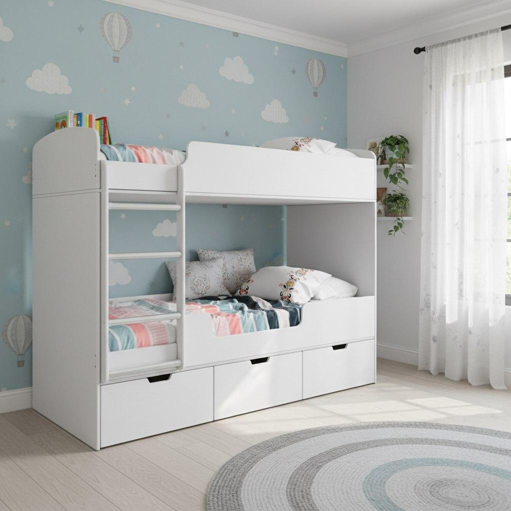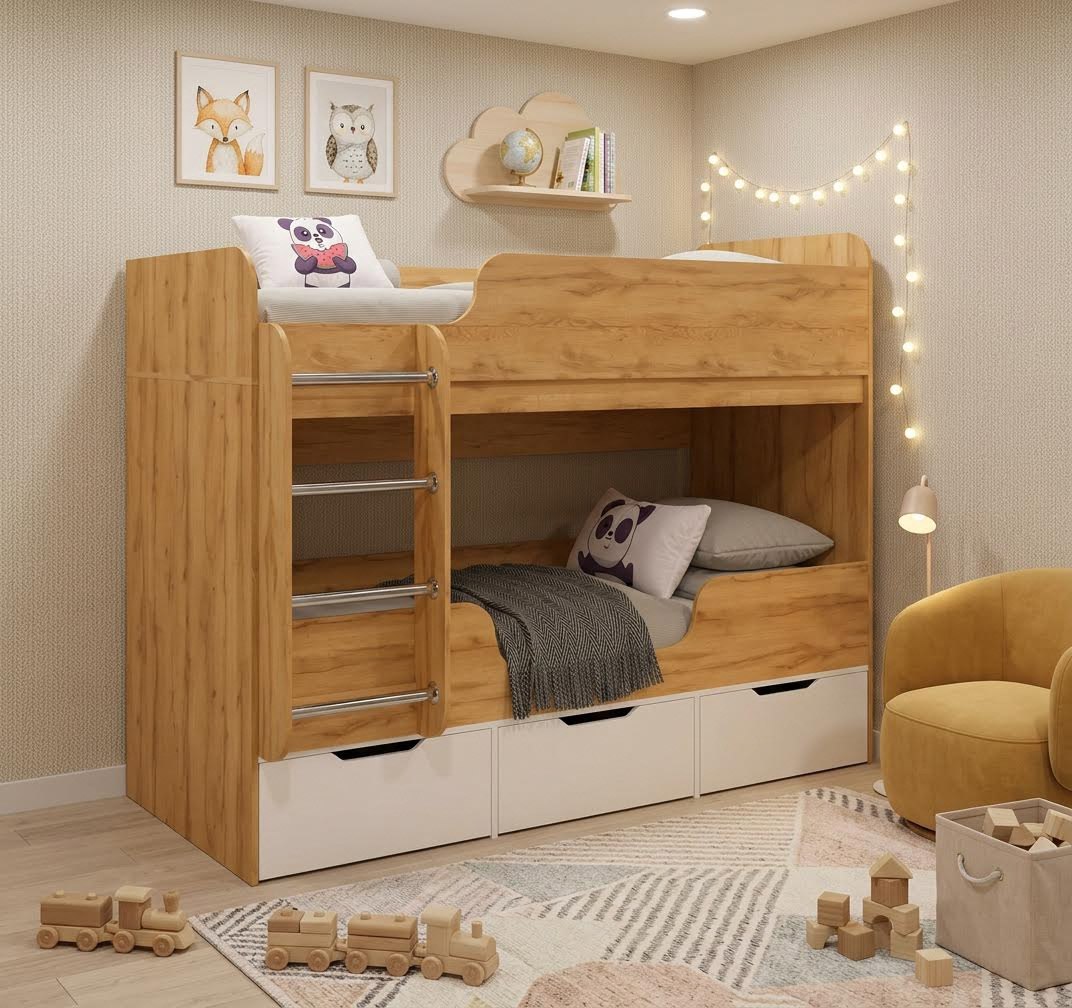 Компактная двухъярусная кровать Малыши Двойняшки создана специально для небольших помещений.