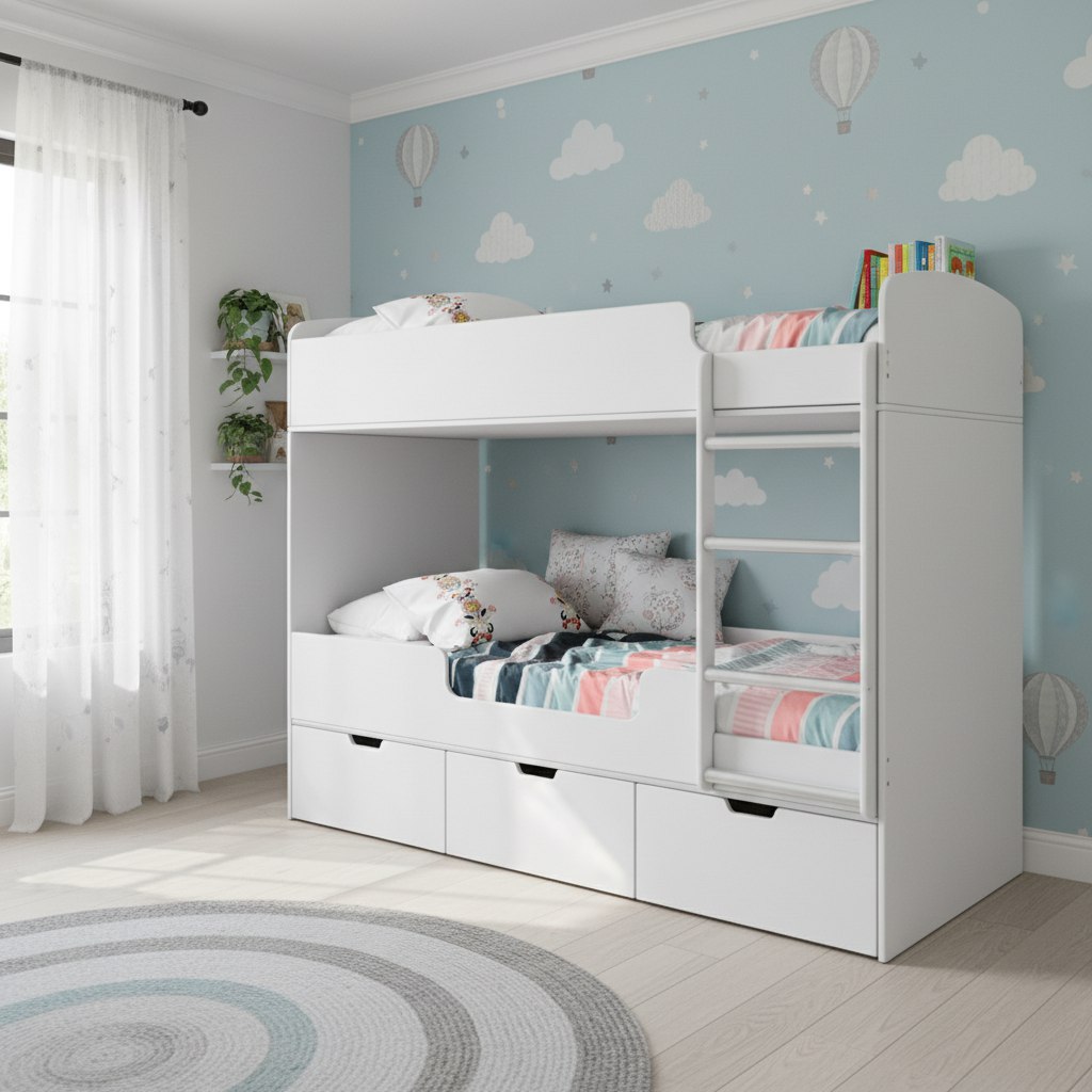Прочная конструкция кровати выдерживает нагрузку до 90 кг на каждое спальное место.