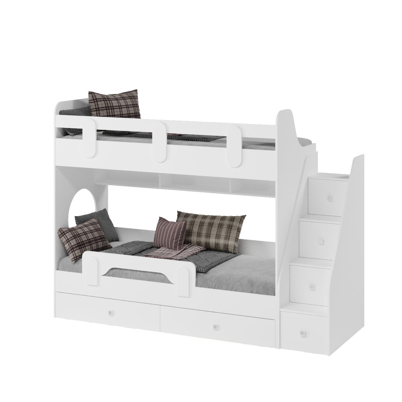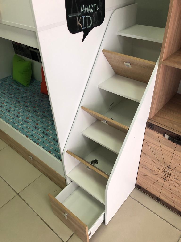 Два выдвижных ящика нижней кровати с прочным дном из ЛДСП 16 мм (не ДВП, не ХДФ!) выдерживают нагрузку до 45 кг.