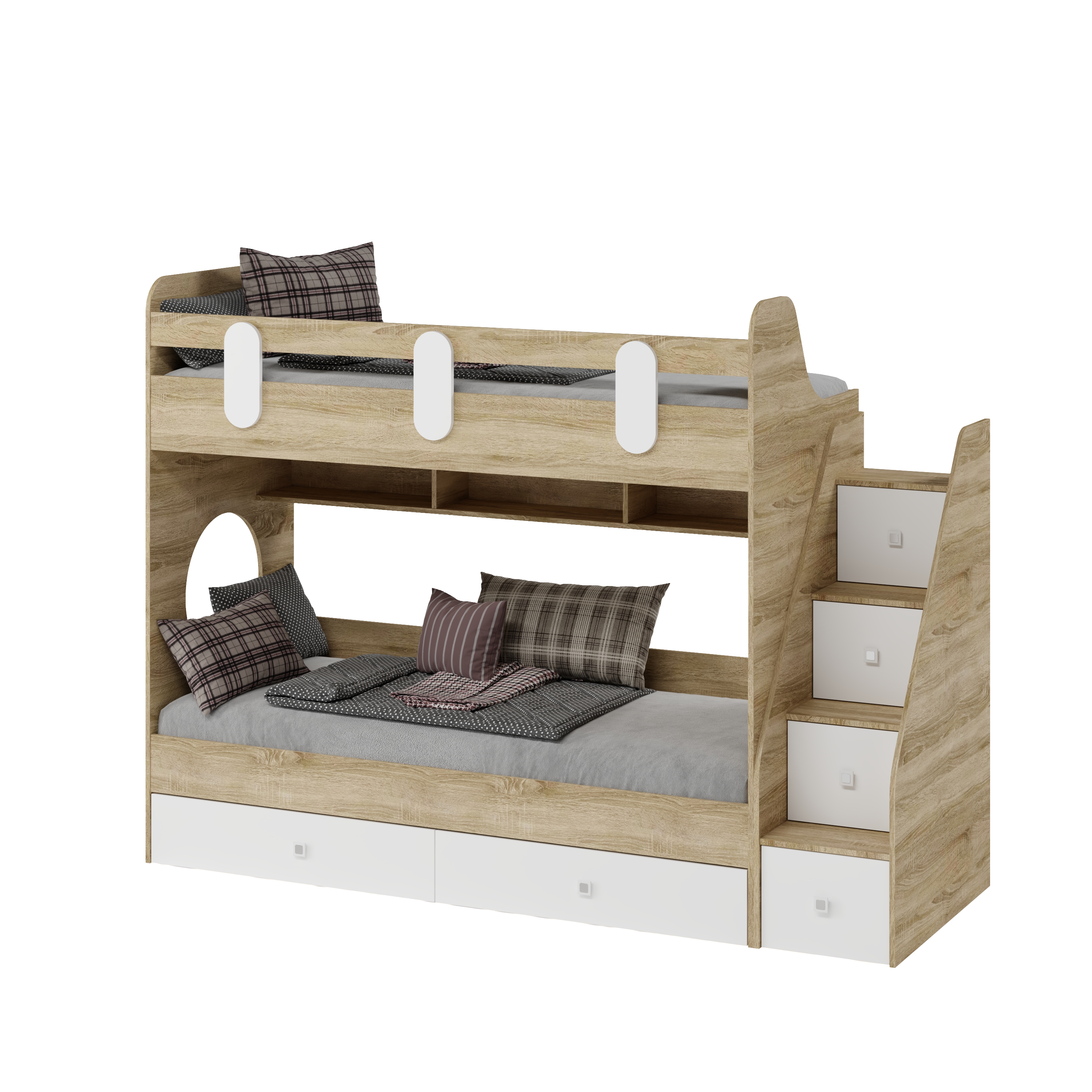 Выдвижные ящики в нижней кровати имеют глубину 450 мм, высоту 150 мм