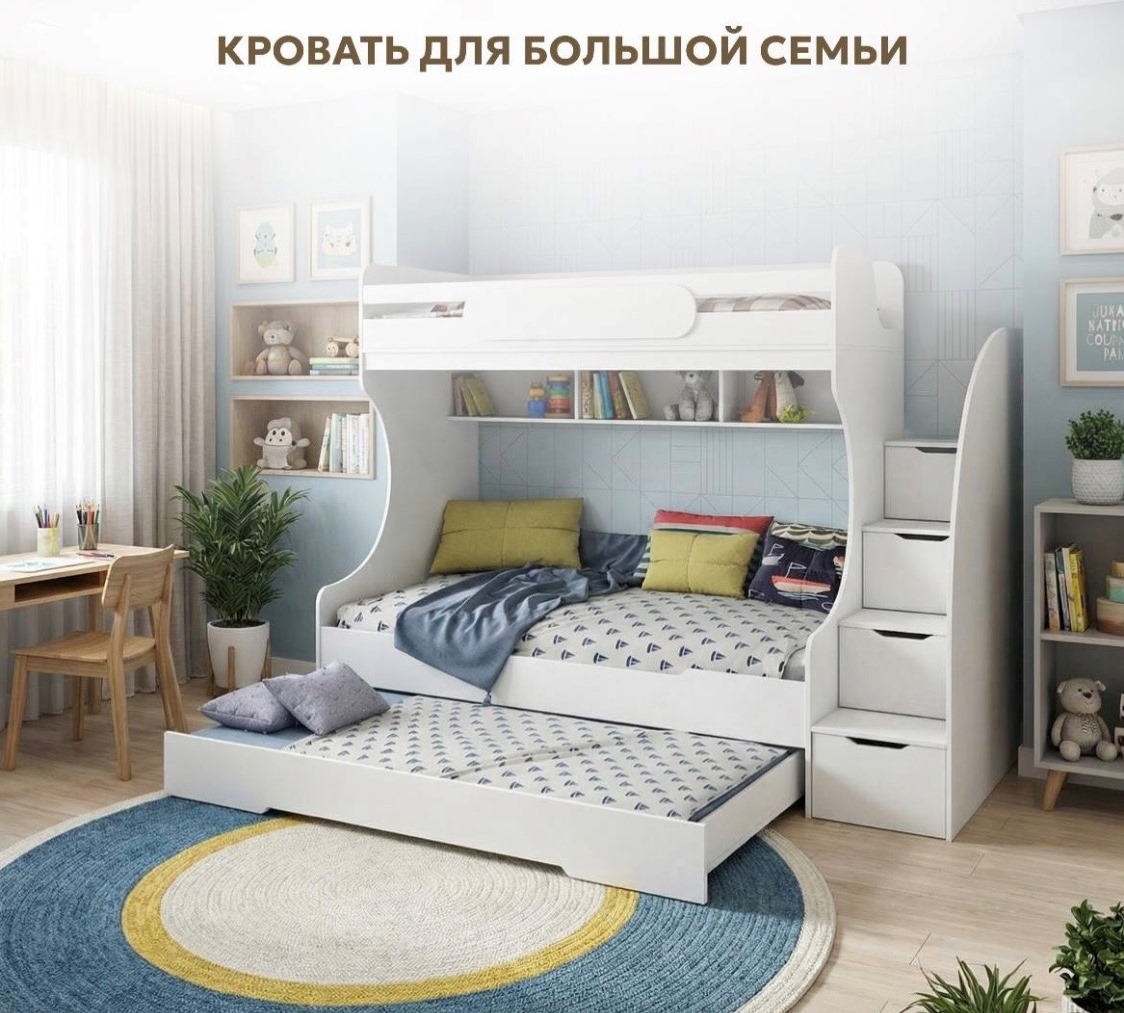 Вместо них - цельный и прочный настил из ЛДСП, который выдерживает сверхвысокую нагрузку и позволяет расположиться даже взрослому с ребенком.