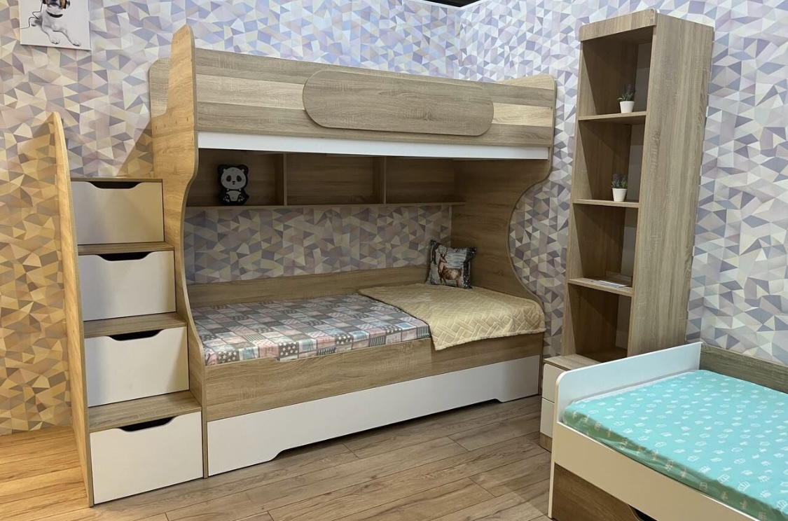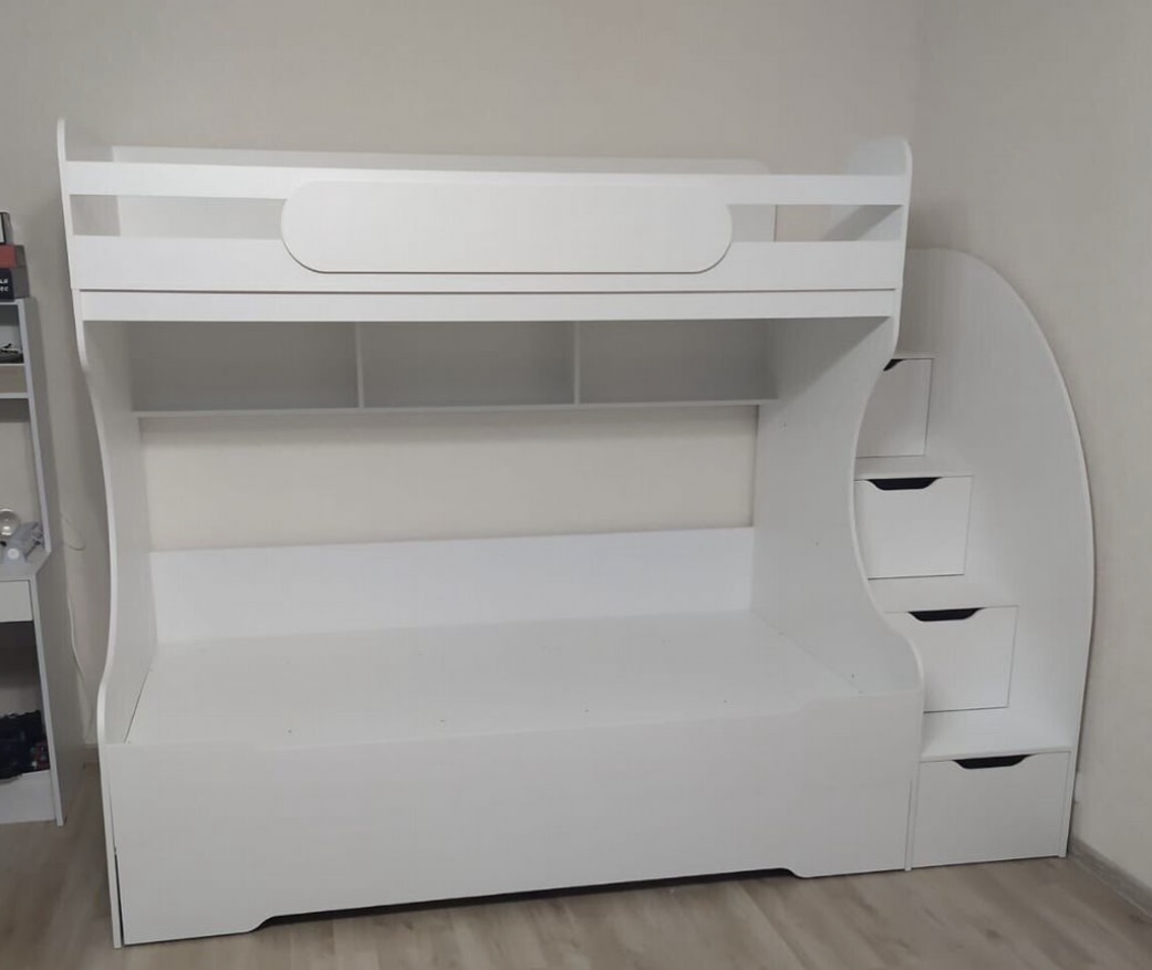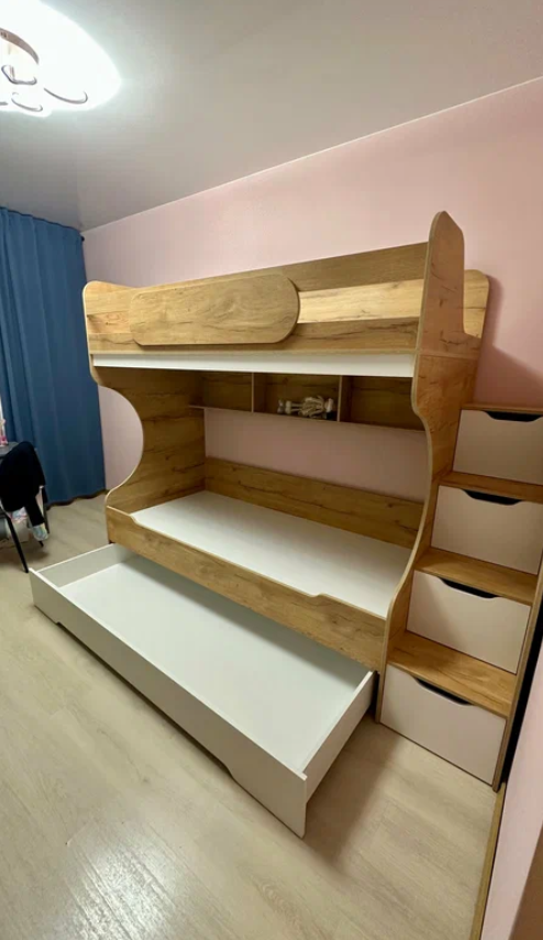 Вместо них - цельный и прочный настил из ЛДСП, который выдерживает сверхвысокую нагрузку и позволяет расположиться даже взрослому с ребенком.