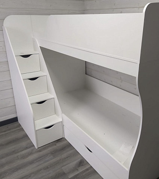 Вместо них - цельный и прочный настил из ЛДСП, который выдерживает сверхвысокую нагрузку и позволяет расположиться даже взрослому с ребенком.