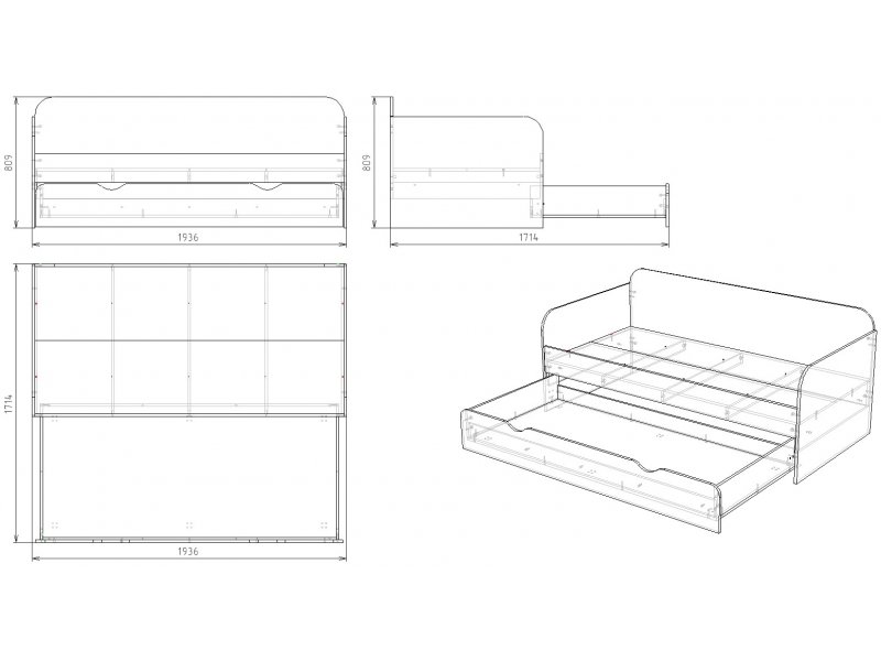 Спальное место верх: 190 х 90 см - нагрузка на спальное место до 150 кг
