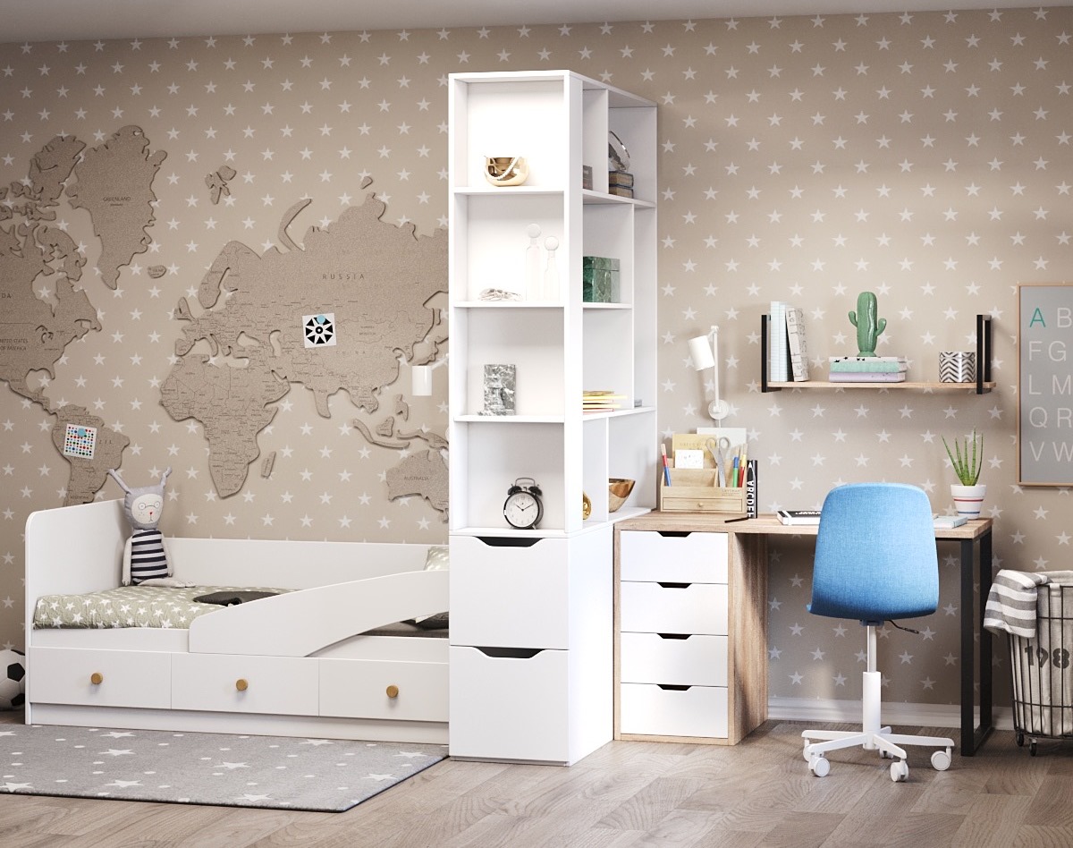 Комплект мебели для детской: кровать Умка-5 + стеллаж + стол + полка