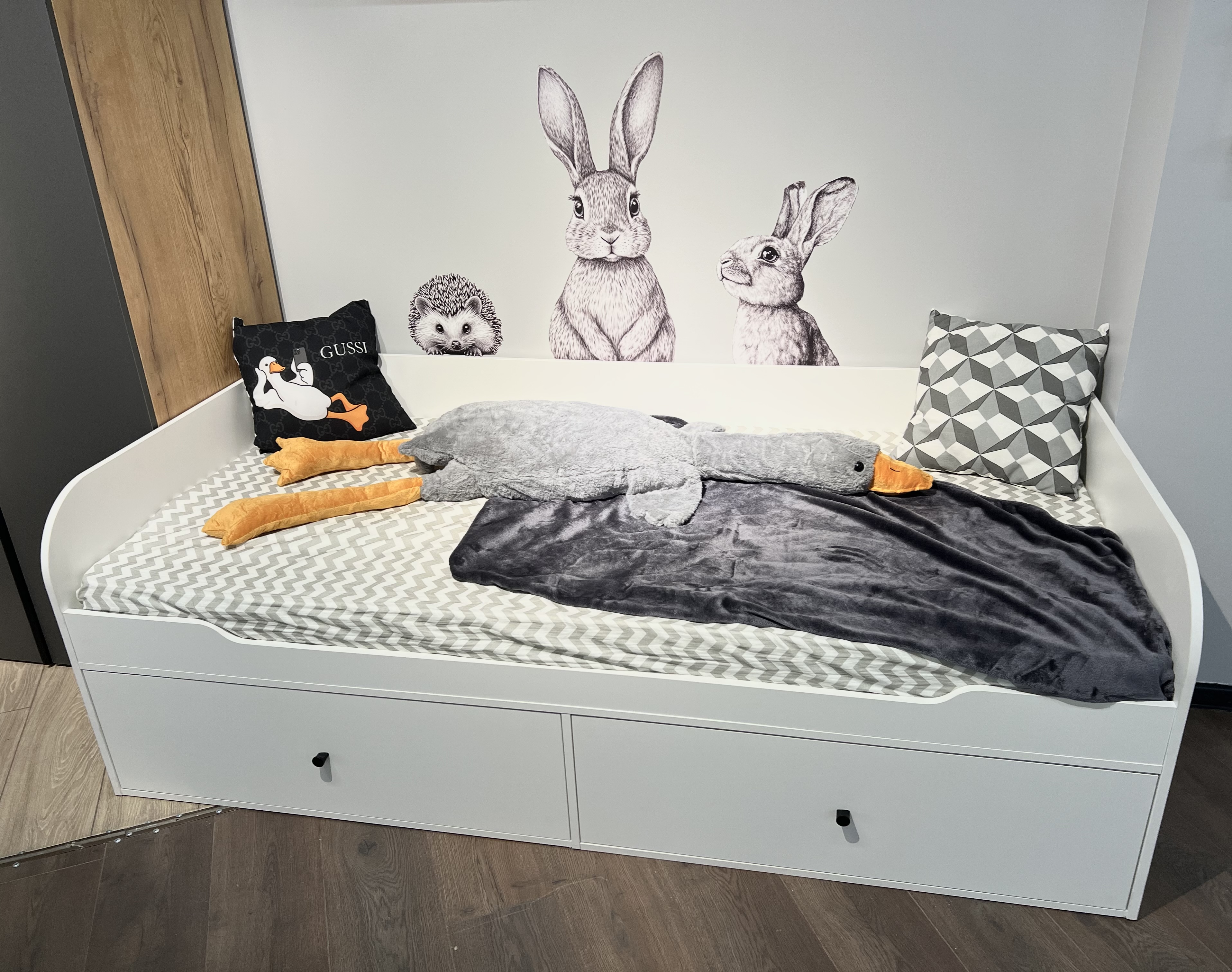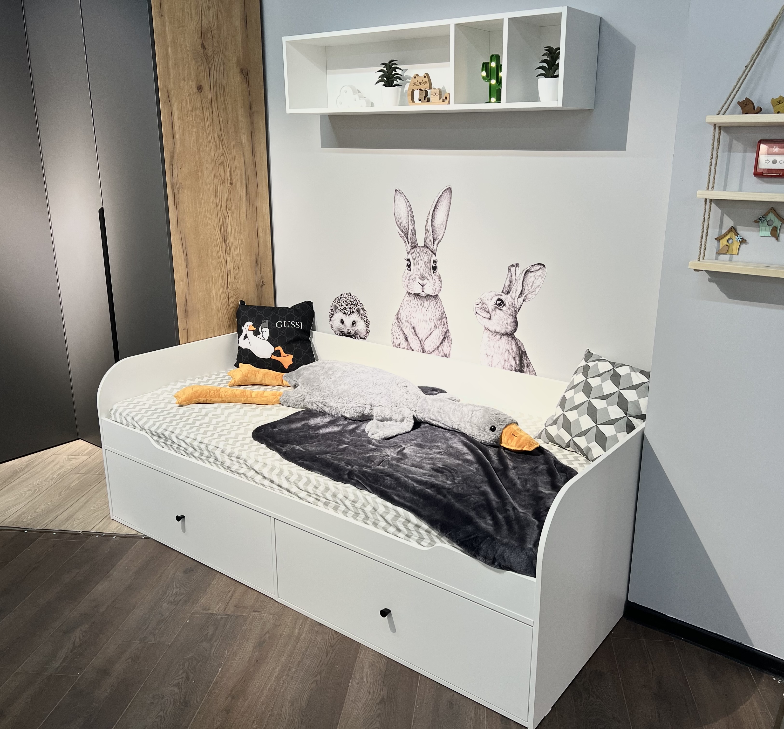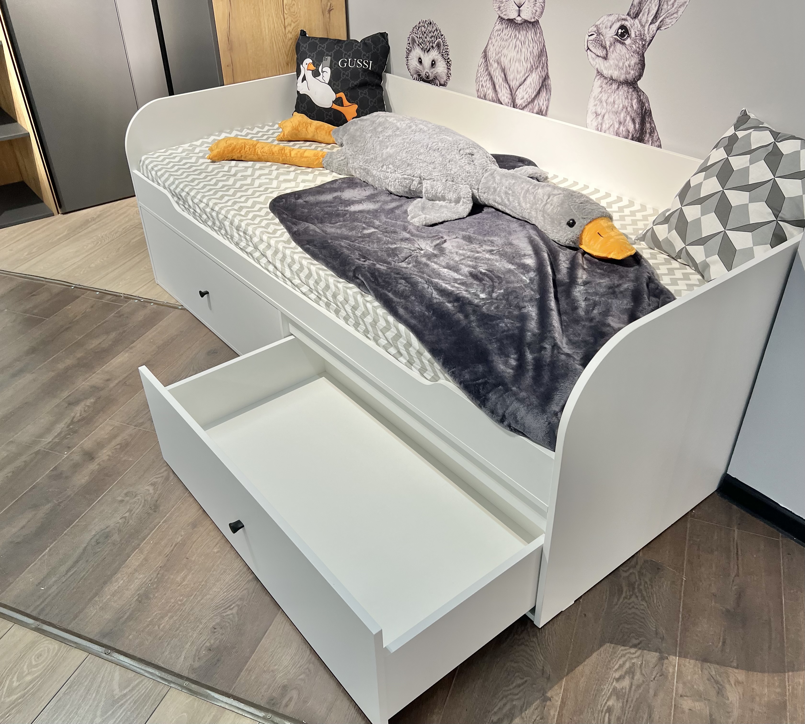 Высокая нагрузка на спальное место. Ящики кроватей с доводчиками. Прочные ящики!