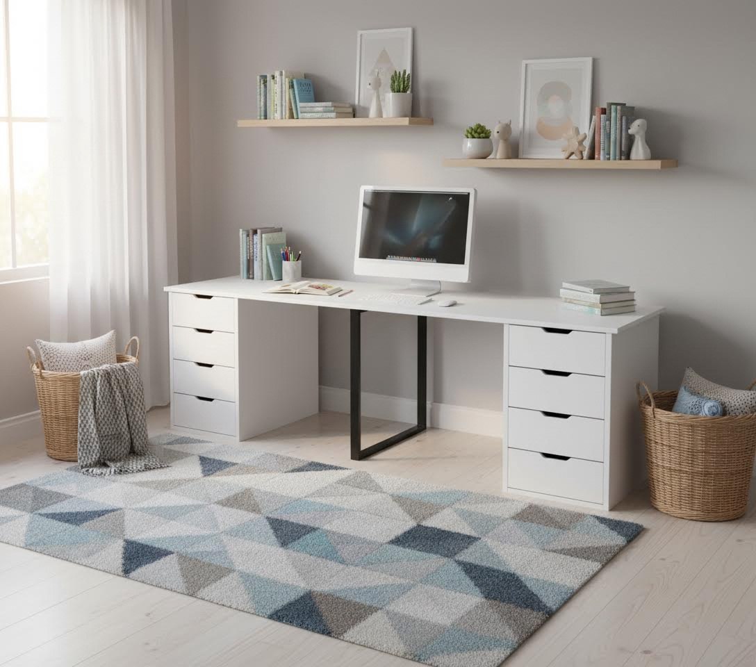 Стол для двоих детей - отличное решение для небольших комнат.