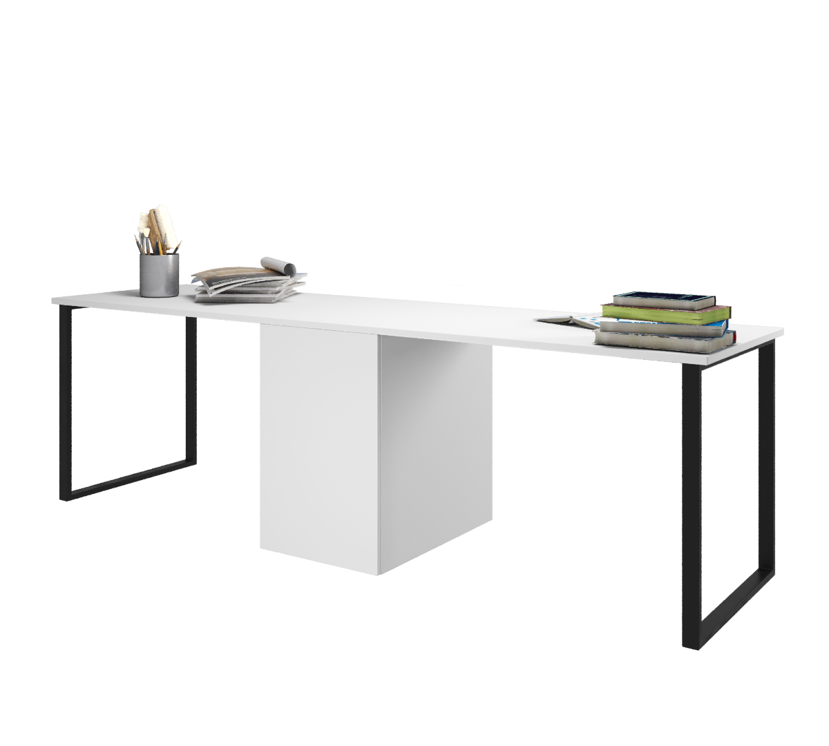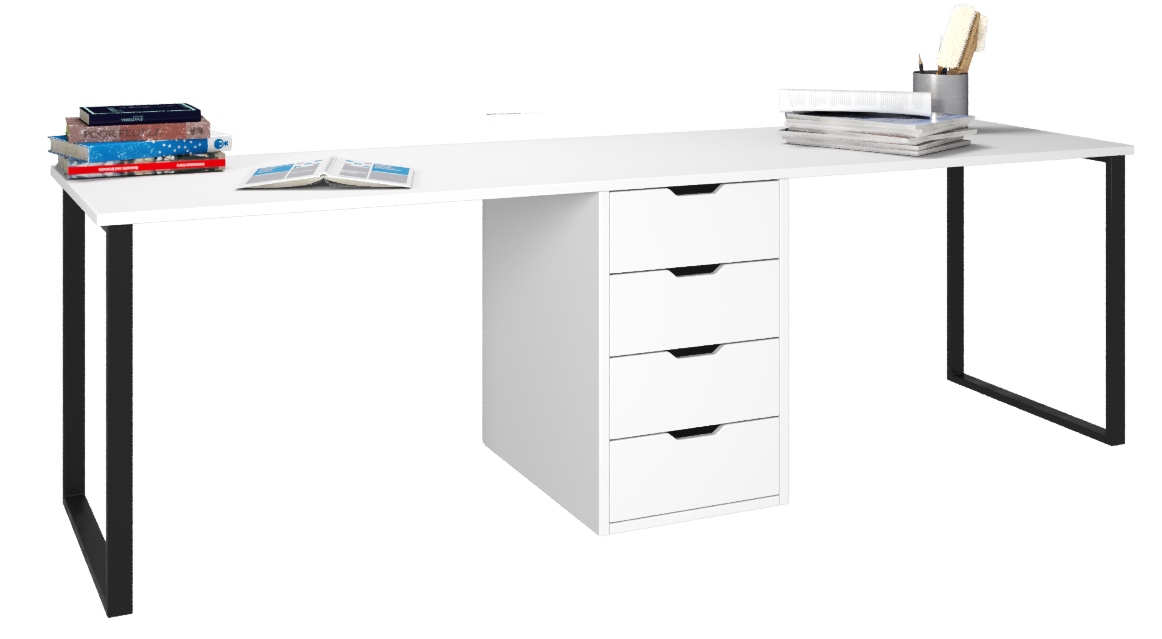 Стол Дуэт 2400 мм (белый + опоры черные). Столешница 22 мм