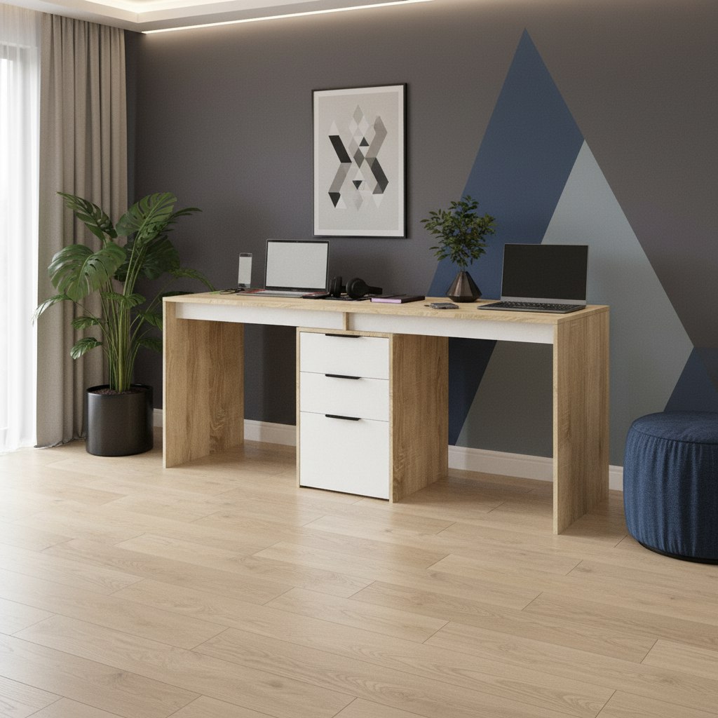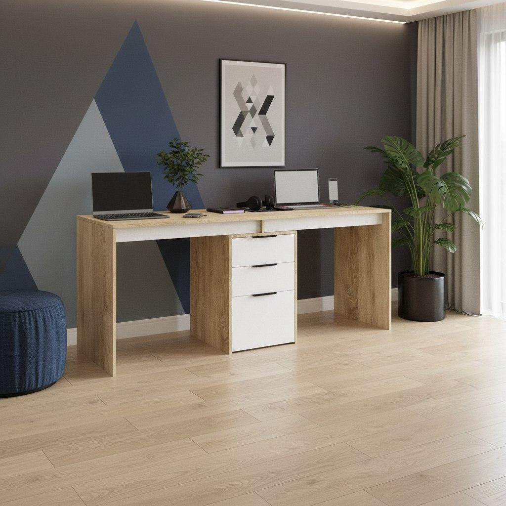 Стол письменный Тандем украсит современную детскую комнату и поможет организовать комфортный учебный процесс для двоих детей.