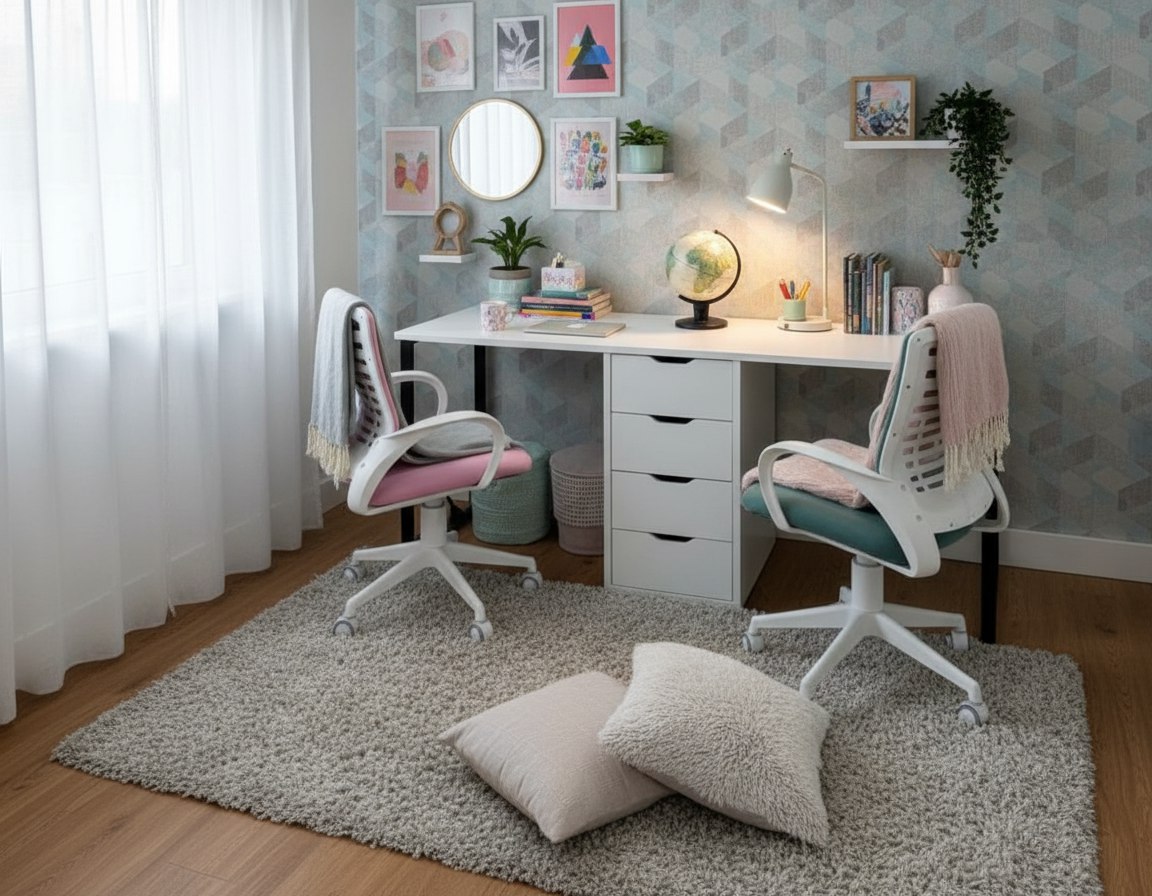 Стол для двоих детей - отличное решение для небольших комнат.
