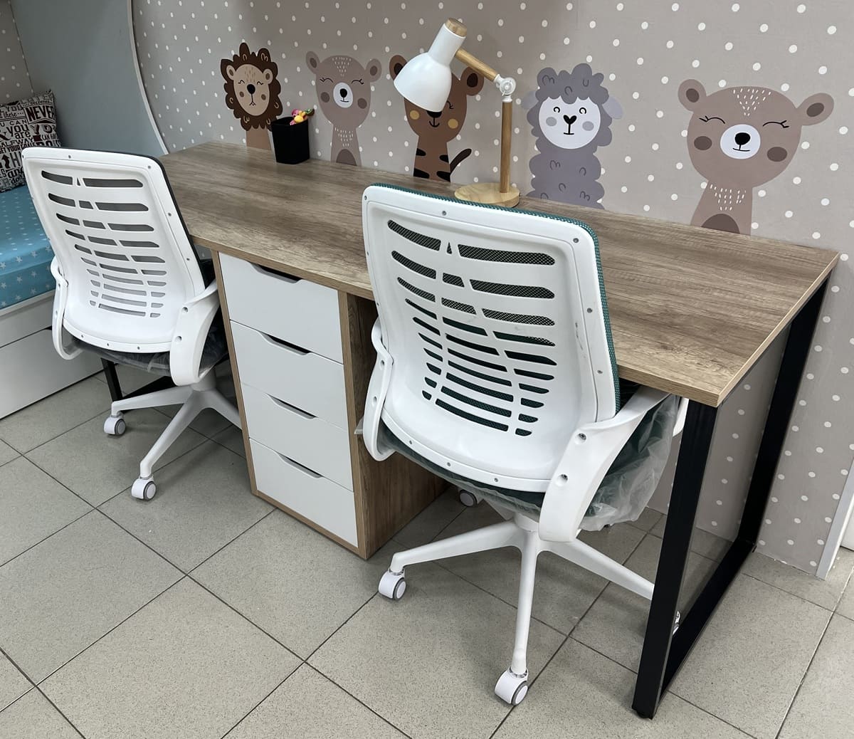 Стол для двоих детей - отличное решение для небольших комнат.