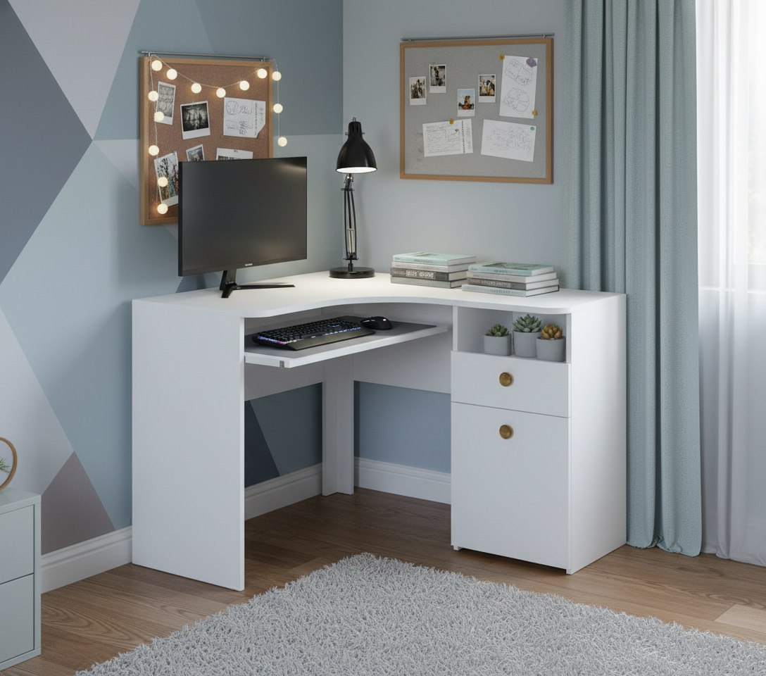Мебель выполнена из сертифицированного, качественного, экологически чистого ЛДСП класса Е0,5 в белом цвете.