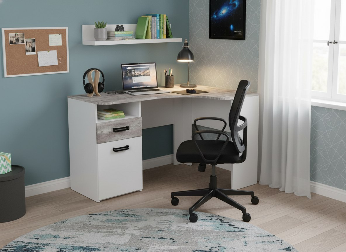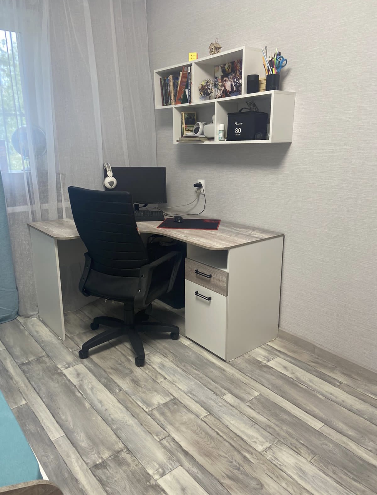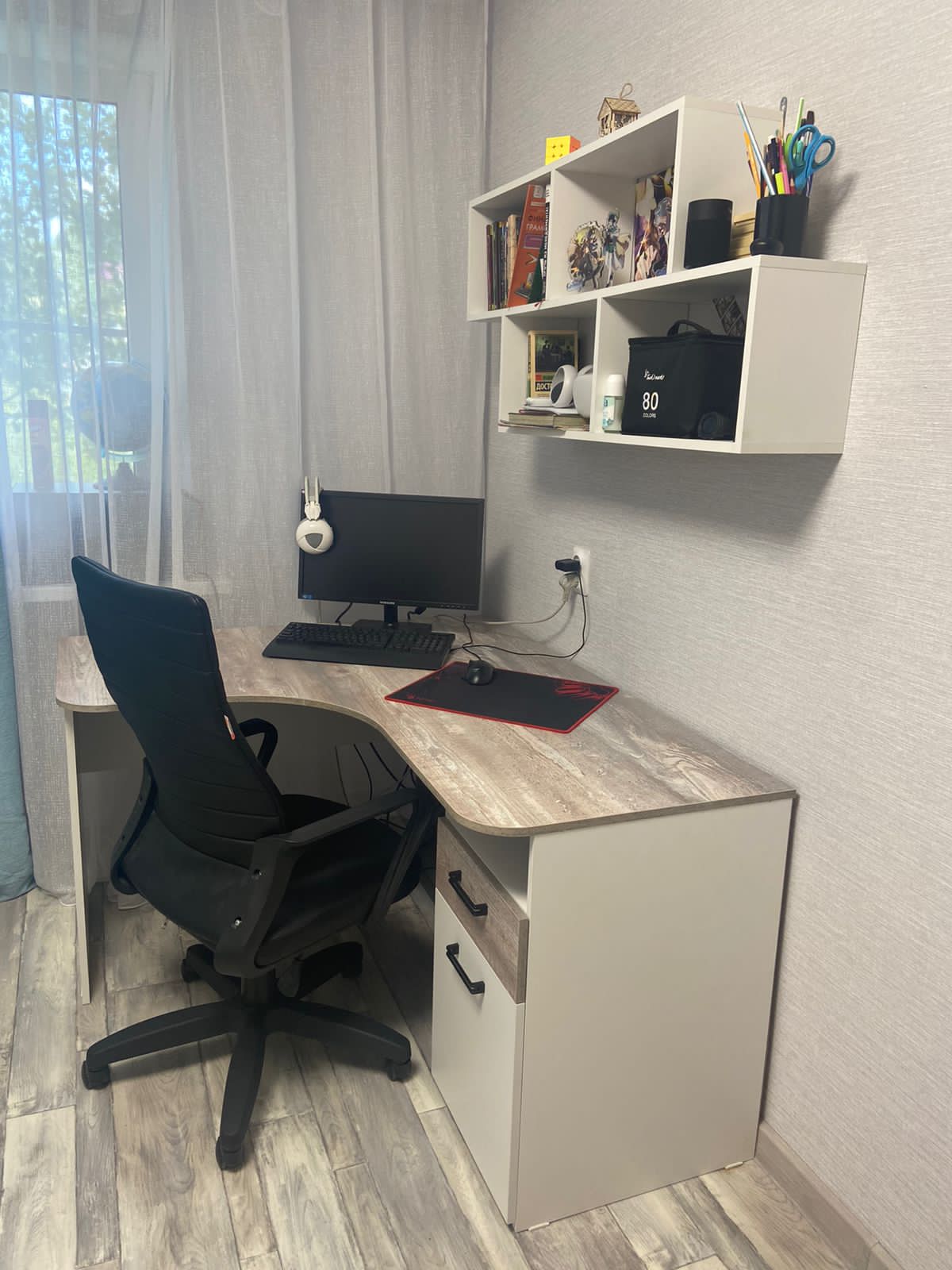 Мебель выполнена из сертифицированного, качественного, экологически чистого ЛДСП класса Е0,5 в сочетании цветов "бетон пайн" + белый.