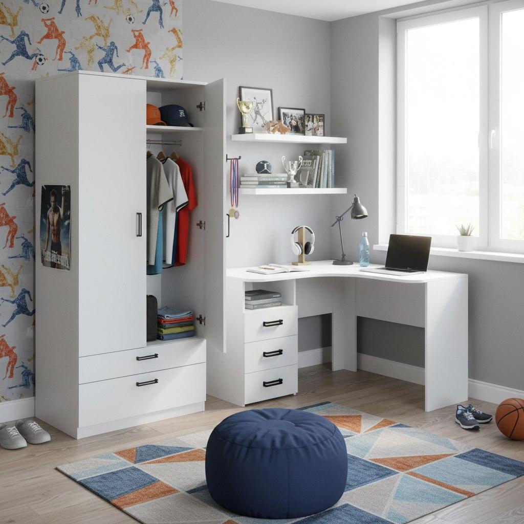 Мебель выполнена из сертифицированного, качественного, экологически чистого ЛДСП класса Е0,5 в белом цвете.