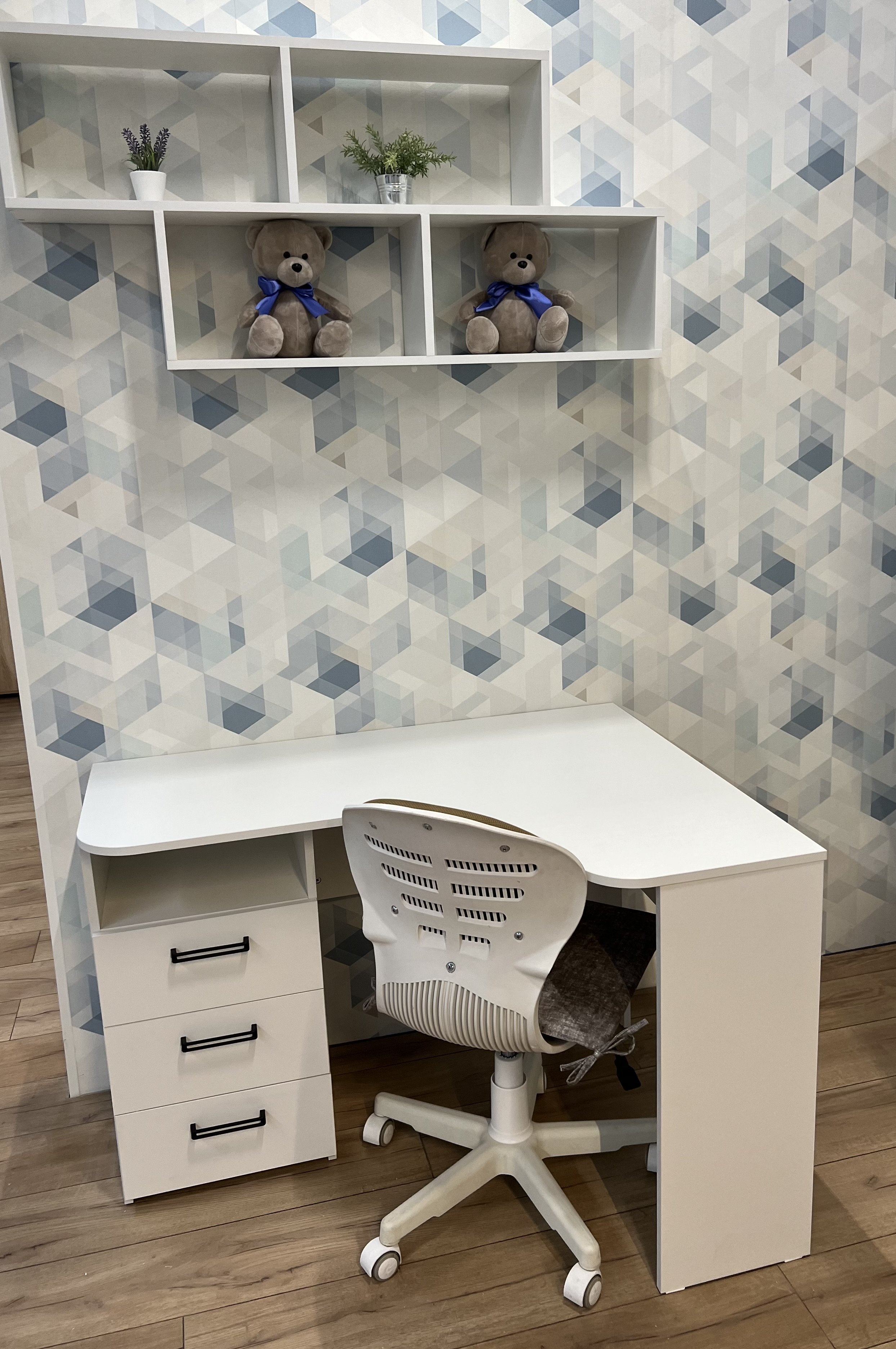 * В стол встроены три выдвижных ящика на шариковых направляющих.