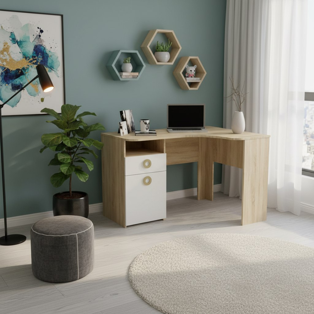—Стол угловой коллекции Юниор (дуб сонома+белый) правый/левый
