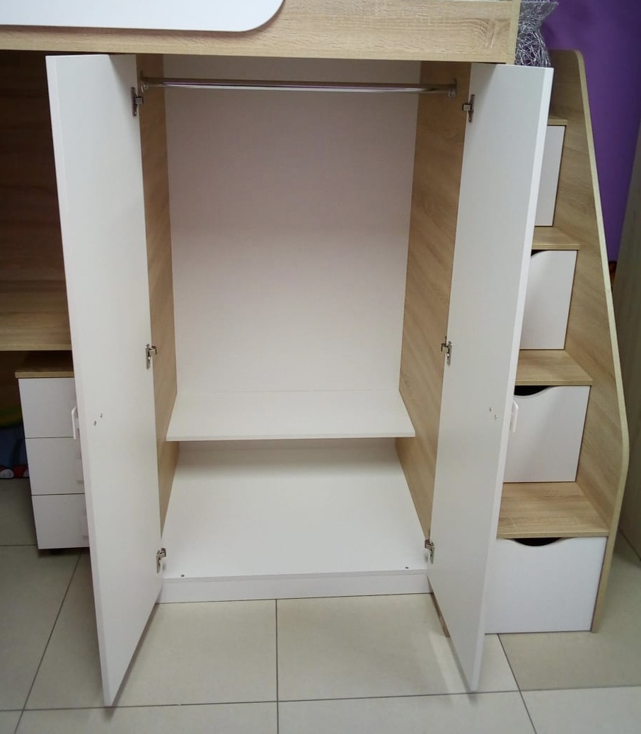 Конструкция позволяет собрать кровать с лестницей как с правой, так и с левой стороны.