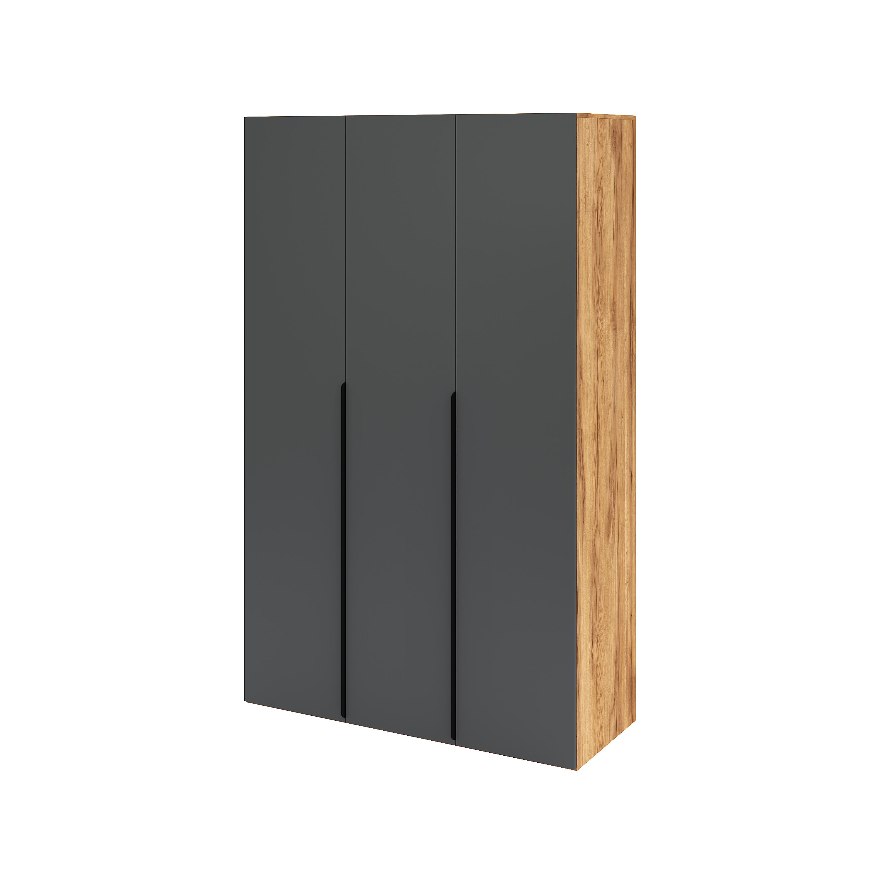 Трехдверный распашной шкаф коллекции мебели Брайт Графит - функциональное решение для хранения одежды, обуви и аксессуаров.