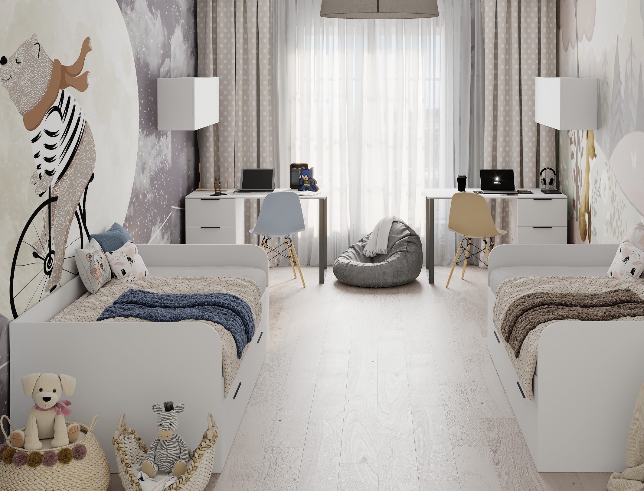 —Комплект для 2 детей коллекции Брайт: кровать 200х90 (2 шт) + стол (2 шт) + полка (2 шт)