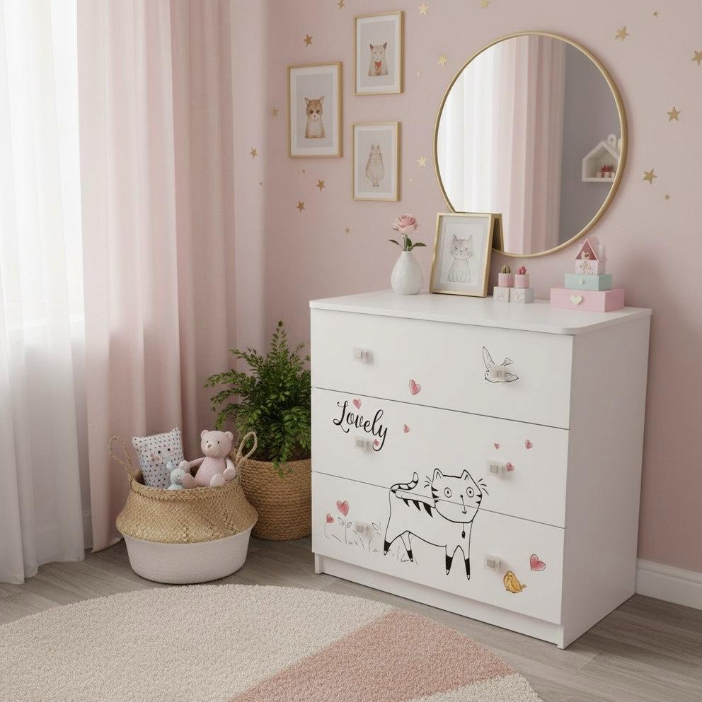 Мебель выполнена из сертифицированного, качественного, экологически чистого ЛДСП Е0,5 в белом цвете с дизайнерским принтом.