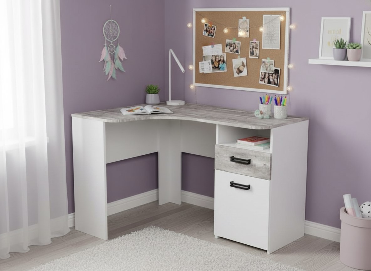 Мебель выполнена из сертифицированного, качественного, экологически чистого ЛДСП класса Е0,5 в сочетании цветов "бетон пайн" + белый.