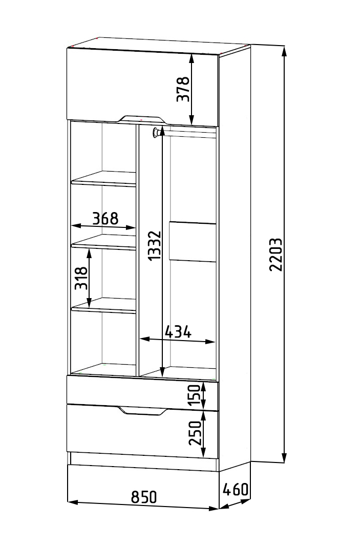 Шкаф для одежды коллекции мебели Лайт Лофт