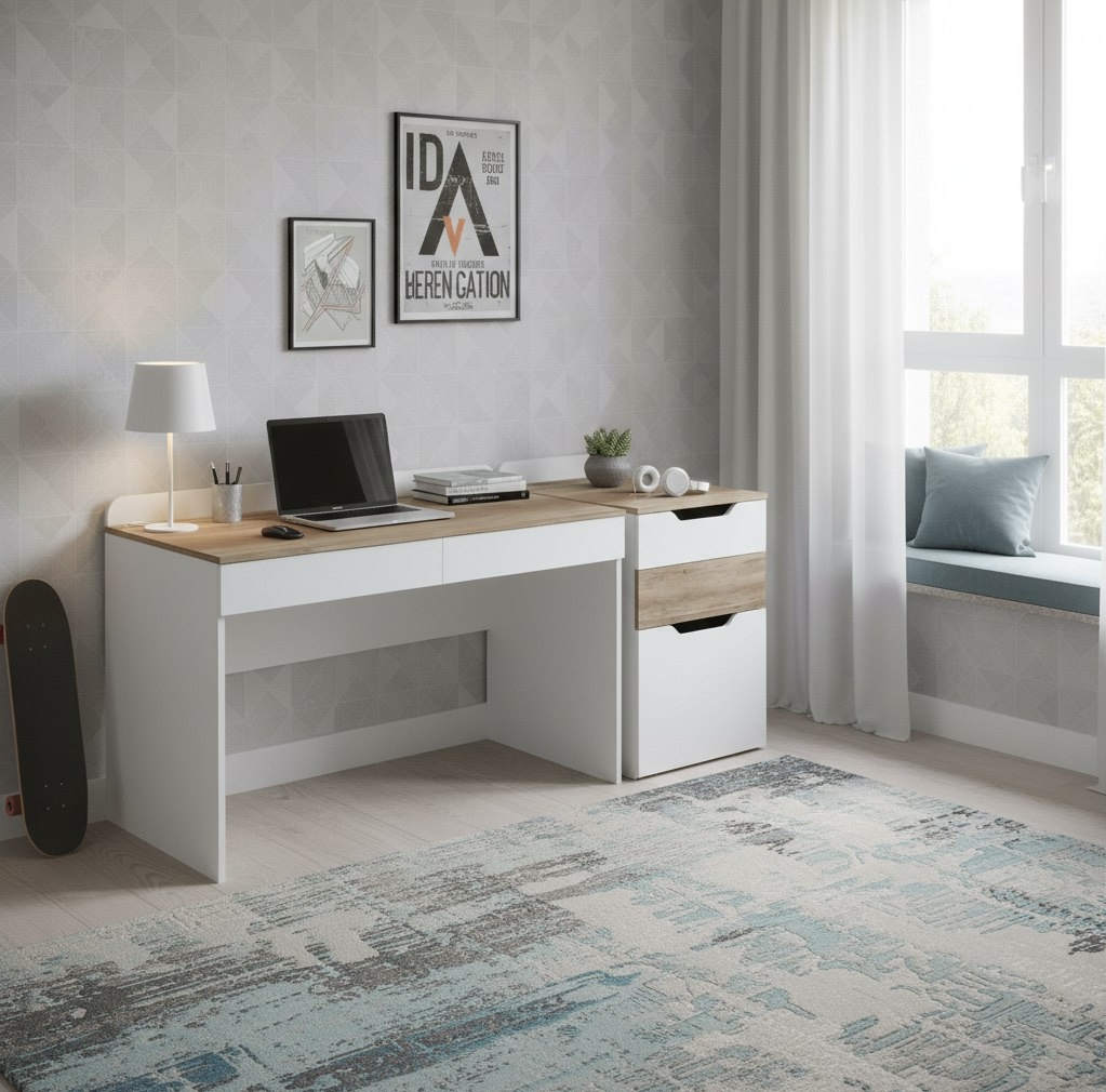 Мебель выполнена из сертифицированного, качественного, экологически чистого ЛДСП Е0,5 в цветах дуб каньон + белый.