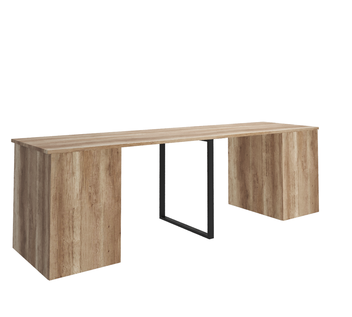 —Стол Дуэт 2200 мм (две тумбы) дуб каньон+белый. Опора черная. Столешница 22 мм