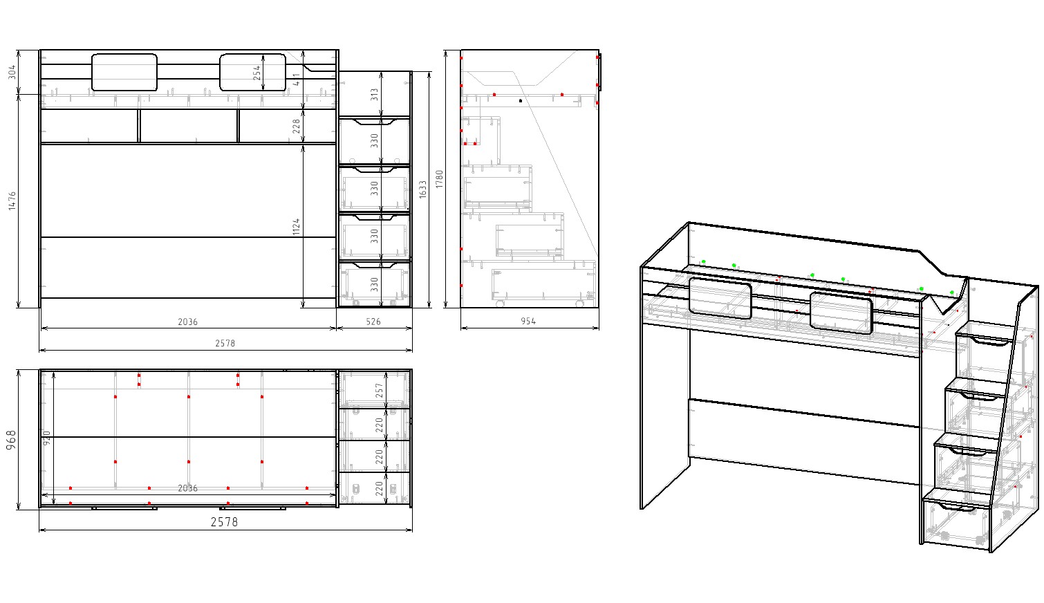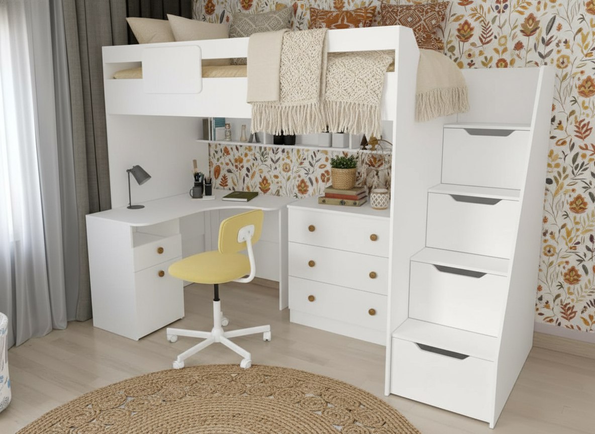 кровать-чердак Мозаика-2 + стол угловой Умка New + комод Умка New