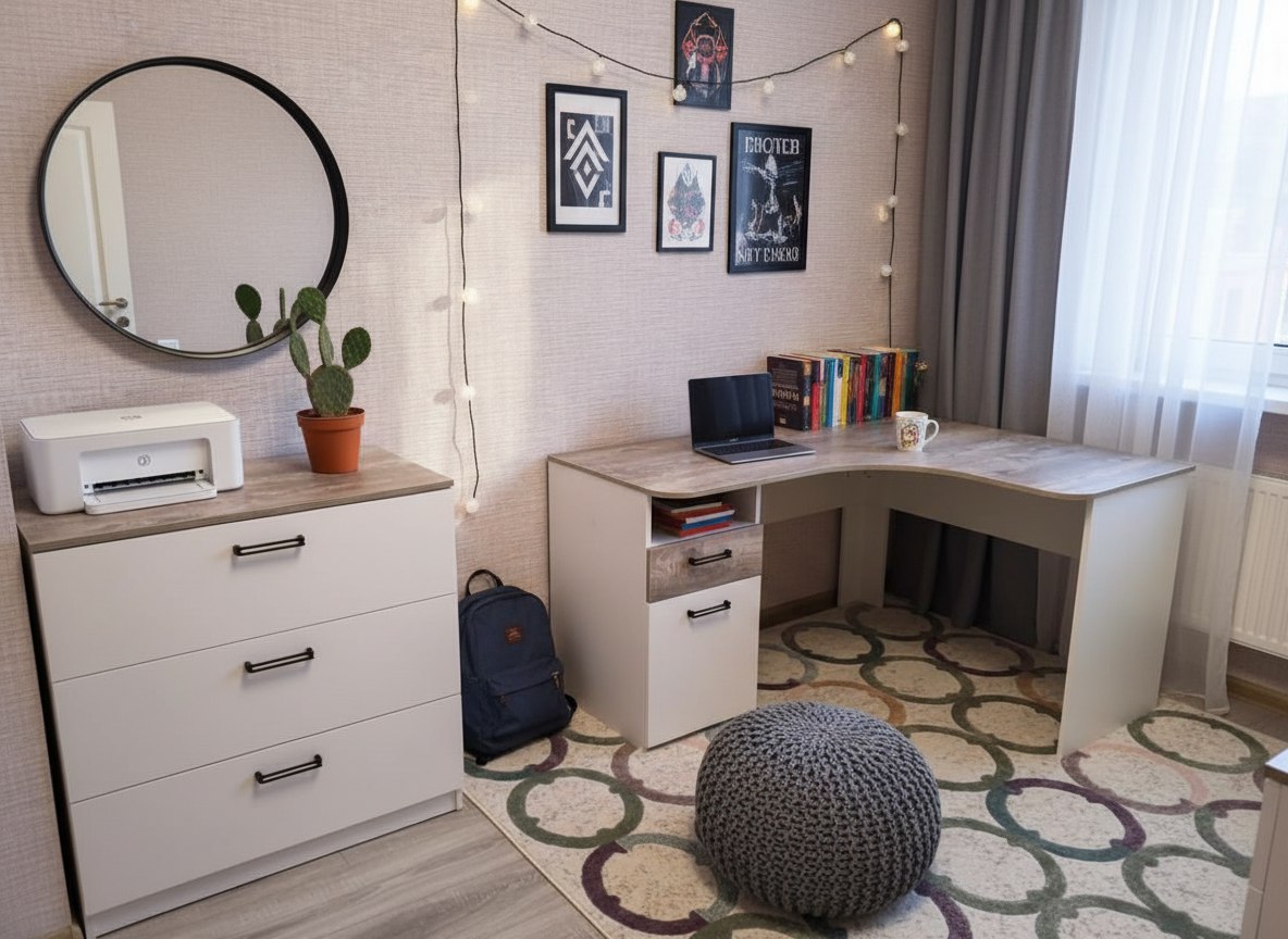 Мебель выполнена из сертифицированного, качественного, экологически чистого ЛДСП класса Е0,5 в белом цвете.