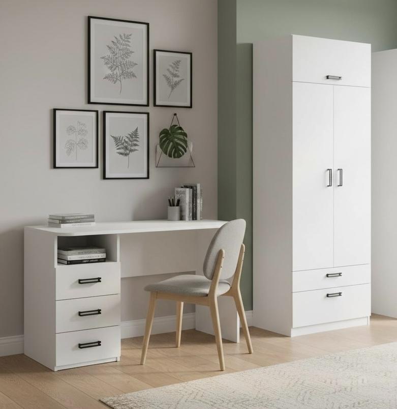 —Шкаф гардеробный + стол с 3 ящиками коллекции Престиж