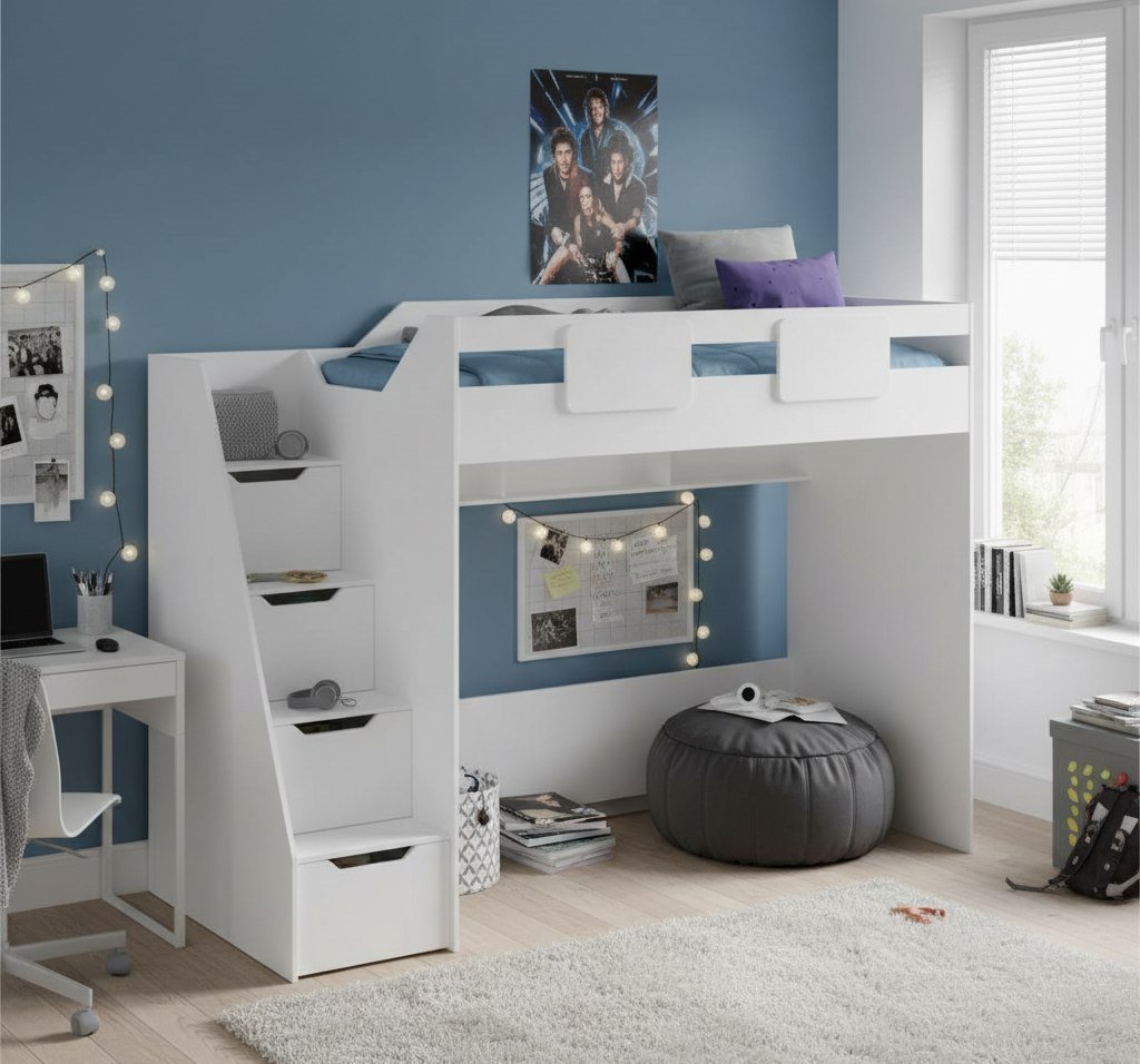 Вместо них - цельный и прочный настил из ЛДСП, который выдерживает сверхвысокую нагрузку и позволяет расположиться даже взрослому с ребенком.