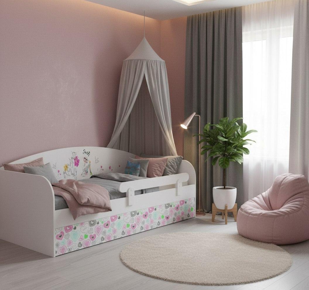 Мебель выполнена из сертифицированного, качественного, экологически чистого ЛДСП Е0,5 в белом цвете с дизайнерским принтом
