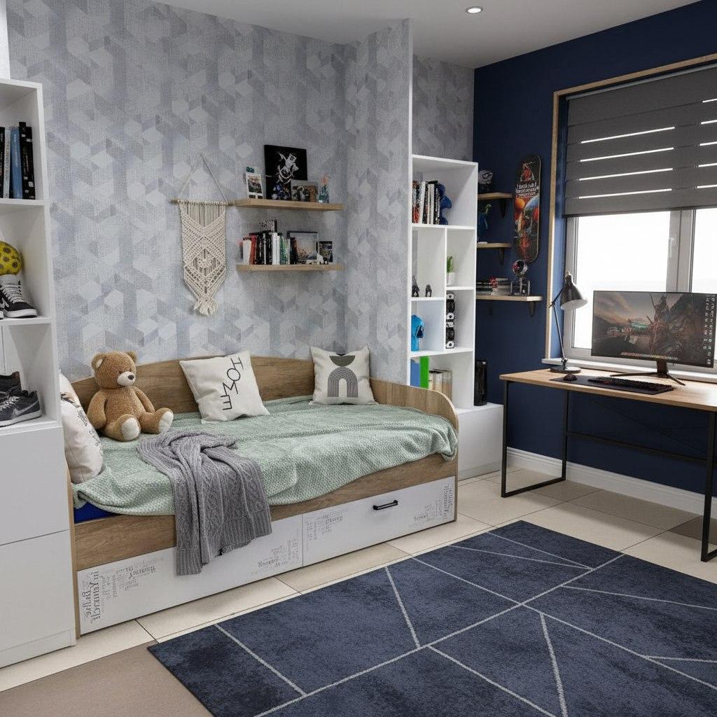 Данная модель кровати выполнена в современном дизайне, превосходно дополнит интерьер детской комнаты.