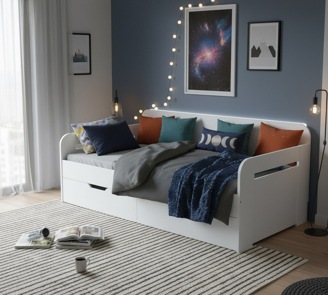 Торцы кровати закруглены и обработаны ударопрочной кромкой ПВХ