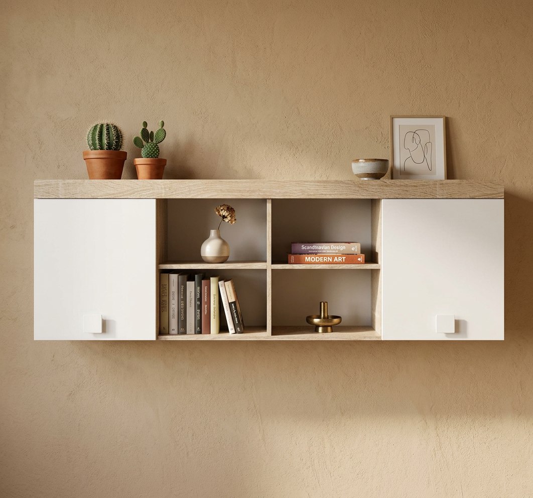 Оттенок натурального дерева "дуб сонома" дает ощущение комфорта и единения с природой, а воздушный белый цвет в интерьере работает как основа для ярких штрихов.