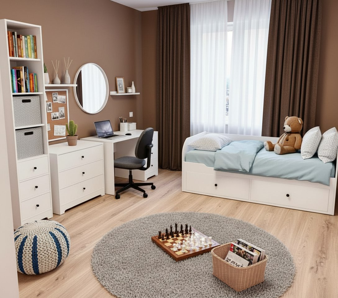 Мебель выполнена из сертифицированного, качественного, экологически чистого ЛДСП класса Е0,5