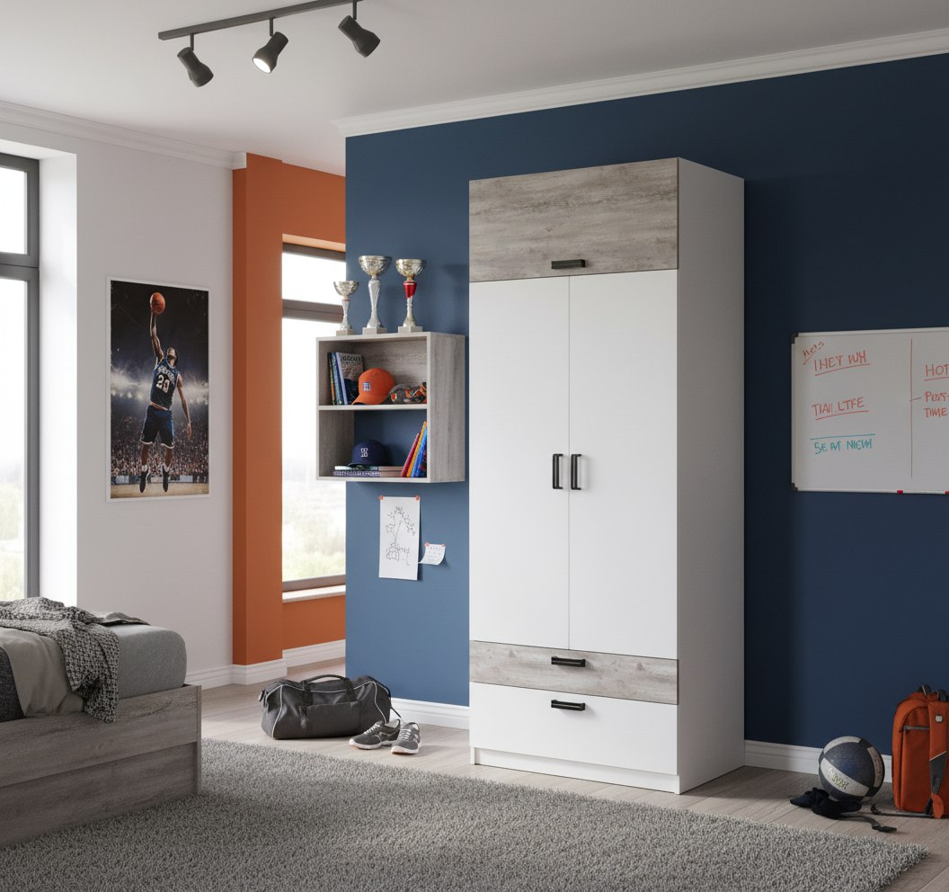 Мебель выполнена из сертифицированного, качественного, экологически чистого ЛДСП класса Е0,5  в сочетании цветов "бетон пайн" + белый.