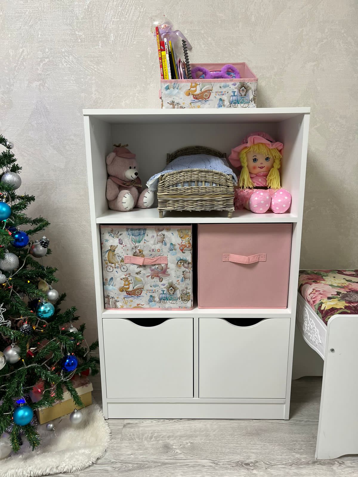 Коробки для игрушек не входят в стоимость стеллажа.