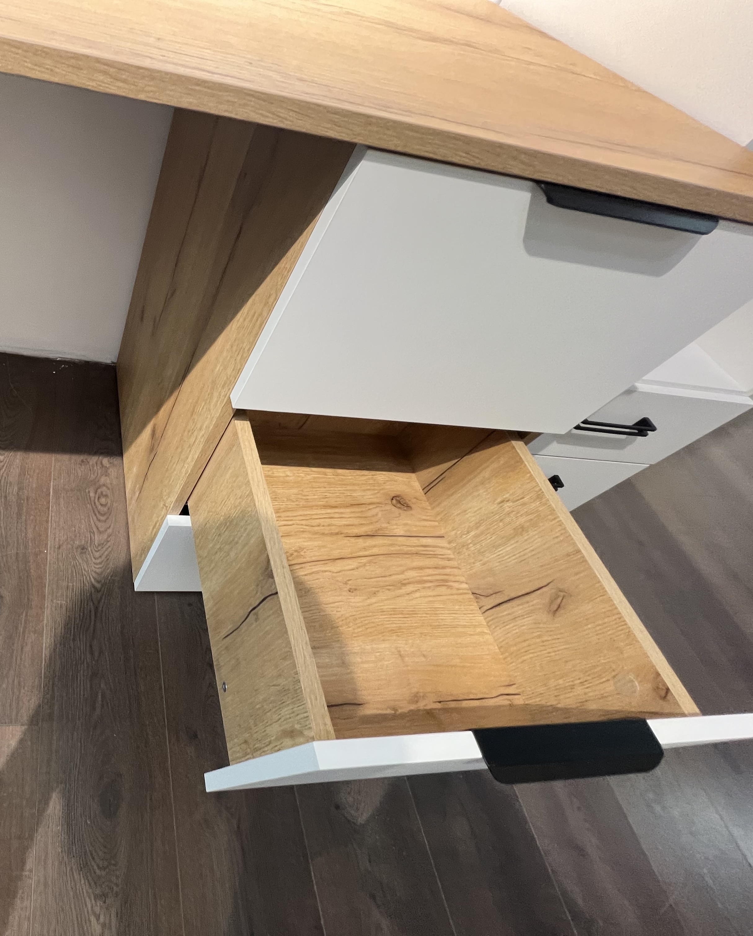 Выдвижные ящики столов с доводчиками. Дно ящиков прочное - выполнено из ЛДСП 16 мм (не ДВП!)