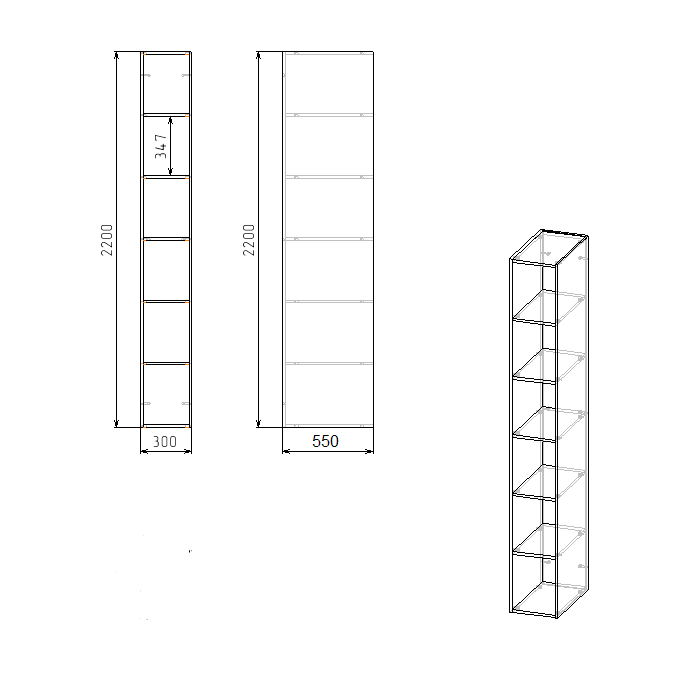 ширина 300 х высота 2200 х глубина 550 мм