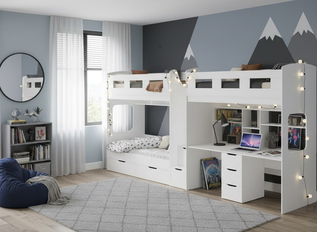- Максимальная экономия пространства: модель освобождает место для игр и учебы, сохраняя при этом уют и комфорт.