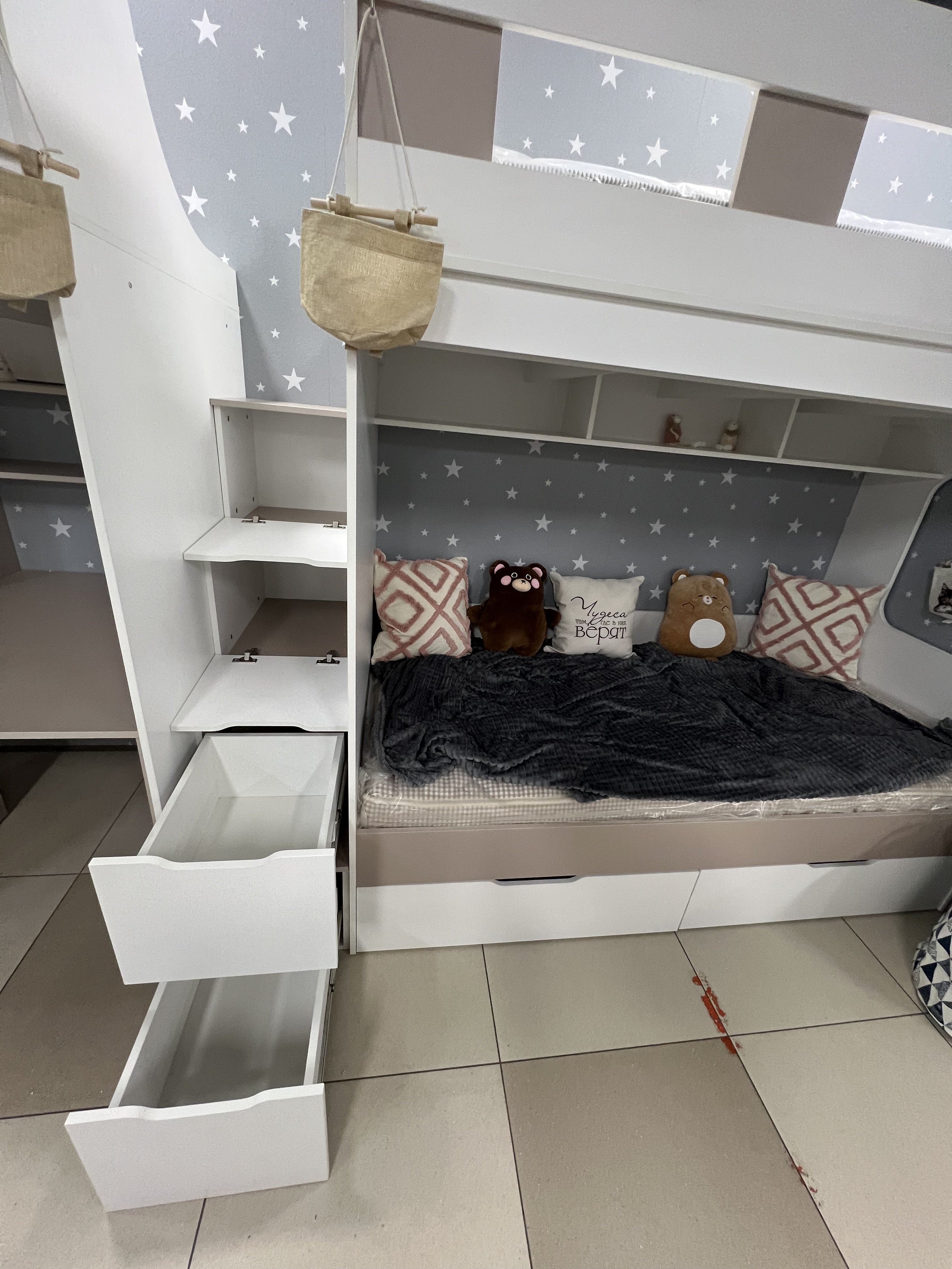 - Максимальная экономия пространства: модель освобождает место для игр и учебы, сохраняя при этом уют и комфорт.