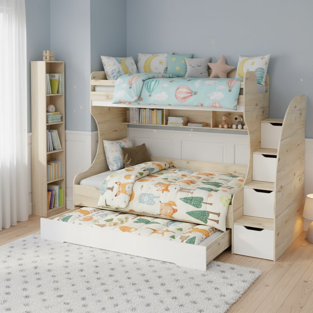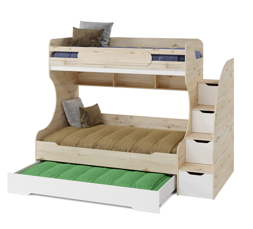 Увеличенное, просторное нижнее спальное место позволяет комфортно разместиться ребенку вместе со взрослым.